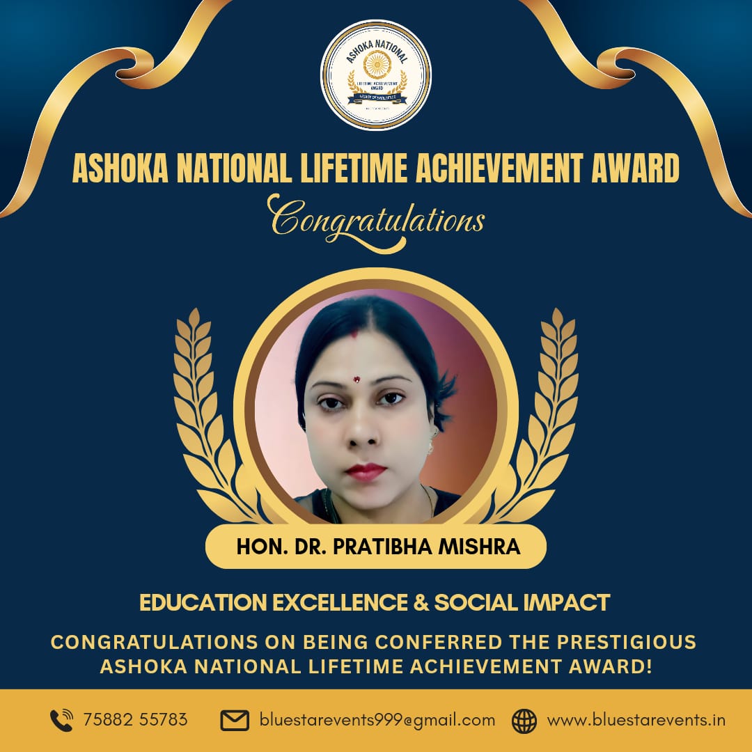 The conferment of this prestigious national award underscores Dr. Pratibha Mishra’s distinguished standing in the academic community and reaffirms her impactful role in advancing education and social welfare through sustained professional dedication.
